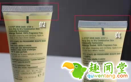 图解:从味道和造工这两方面判断,很容易发现右边的化妆品是假货,但如果你想从防伪码,防伪电话上判断,这就难了,因为假货的电话貌似更全。