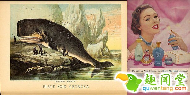 1. 龙涎香(抹香鲸的排泄物):香水的定香剂。