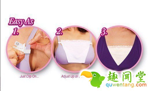 美丽的无肩带内衣,最怕就是滑落走光。但只要找一副闲置的内衣带,在内衣下缘多绕一圈,自信美丽就又重现在你的脸上啦。