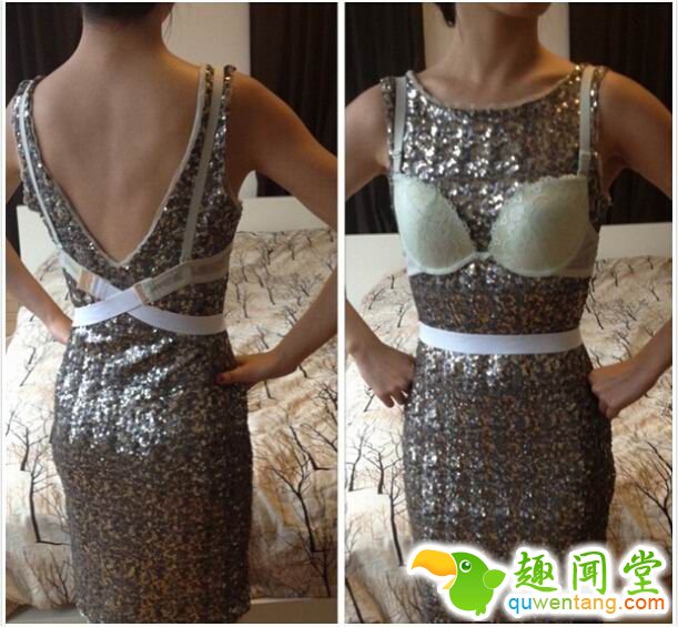 5、露背礼服,何不缝个便宜的无肩带Bra