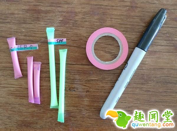 2.利用吸管制作成日常护肤品容器,用完即可丢弃?;蛘呖梢苑诺骄梢窝劬岛欣锼嫔硇?。
