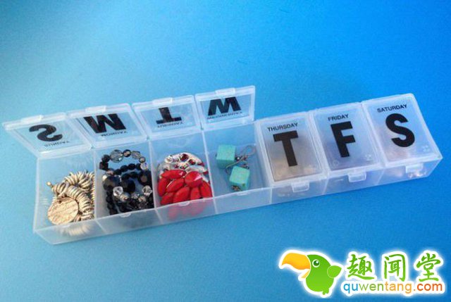 9.用分格式容器收纳饰品及小东西,以免一下飞机后项链打结,饰品全部缠绕在一起。