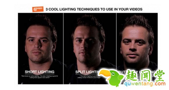 1 显瘦光(short lighting),2 分割光(split lighting),3 蝴蝶光(butterfly lighting)。这三种不同的灯光赋予了主角三种不同的情绪和感情。这种技巧能让你在主角刚坐下的时候就知道要打什么样的灯光,赋予主角什么样的情绪。然后才是你该怎样塑造主角周围的背景灯光。