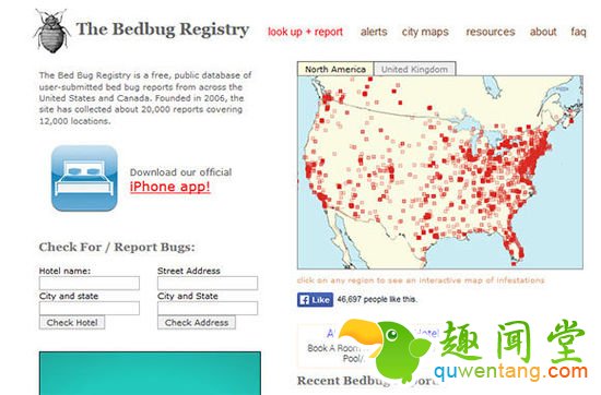 床单之间的小臭虫实在是令人烦不胜烦的东西,即使是再豪华的酒店,也可能被这些小生物侵袭。在入住之前查看一下酒店是否在臭虫注册表上绝对是明智之举。单个的事件可能有主观因素的存在,但是如果是大面积的抱怨,绝对是对你敲响警钟。