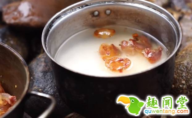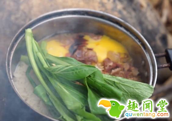 搅拌一下就能尝了。在野外溪边吃这可口也是一种享受。