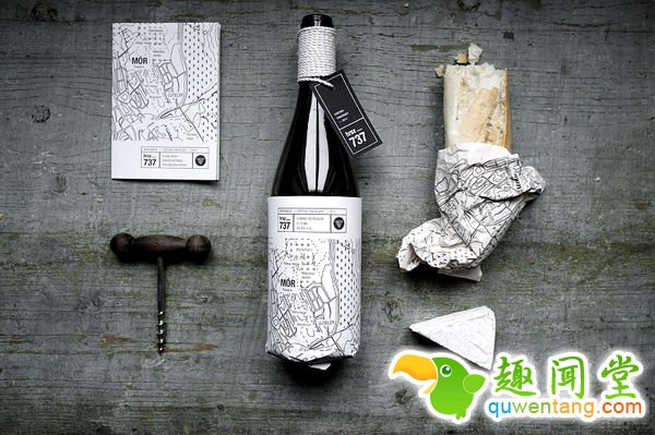 Hrsz. 737瓶子包装设计,包括有两款瓶子包装,一款是受是那老学院的黑白块型样的启发。另一款刚是葡萄园的原生地貌,就是很好的图形。