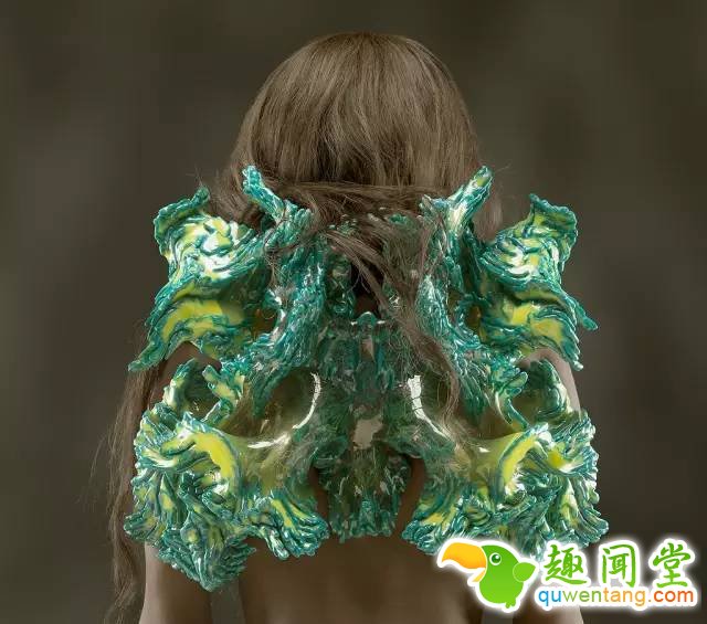 “美”会变异,会转化、甚至会完全抹去她既定的痕迹。即使是同样的材料、同样的外形,一件作品仍然可以表现出新的身份,带来新的惊喜。当你以另一种方式去诠释你的作品的时候,变化也随之悄然发生。英国伦敦设计师Lauren Bowker带领的TheUnseen团队致力于“响应式设计”,利用生物学化学新型材料打造出可以依据环境做出反应的物件。例如在这次库伯·休伊特设计三年展中,TheUnseen团队设计的一件皮夹克运用可变色金属油墨上色,油墨依照空气温度、湿度产生颜色变化,根据风的运动可以从橘色变换成蓝色、绿色,无风环境中则又还原成黑色。