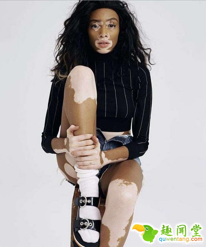 ▼Winnie Harlow:她患有白癜风,正是这种特别的外表,吸引了Tyra Banks的注意。Tyra看到了她Instagram上的照片,邀请她来参加《全美超模新秀大赛》,她没有让人失望。现在Winnie为西班牙品牌Desigual拍了广告,与巴西模特儿Adriana Lima合作,未来越来越光明。
