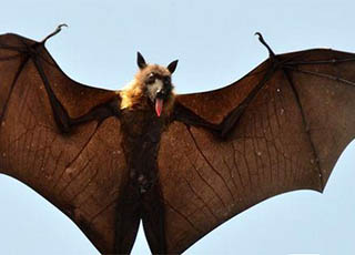 这是一个厚脸皮的蝙蝠,在空中飞翔的时候,被动物学家抓拍到它吐舌头的卖萌表情,不过根据科学家对当地其后环境的勘测和推断,这些印度飞狐蝙蝠搬到博帕尔,印度湖的边上,当地气温大约45度的空中翱翔。这样做的行为大约是为了散热。 一天几次子啊空中飞行的蝙蝠突然从......
