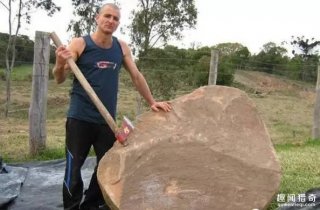 这是男子找到的大石头。他二话不说,直接用斧头砸???......