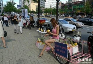 在韩国路边出现了这样一幕,一个穿着性感的美女推着三轮车出来卖水果,当人们以为她是靠美色吸引路过的人买水果时,靠近一看才知道人家靠得是实力......