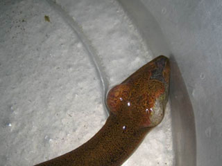 一英国男子在河边游泳时,发现水里有不明生物在奋力游动,走近一看,一条半米多长外形神似鳗鱼的东西张着血盆大口正在捕食,男子吓得连连后退! 为了满足好奇心,男子再次走近观察,只见这条不明生物用圆形嘴巴死死吸住石头不放。男子顺手拿了一根树枝,把它挑到了岸边! 这下不明生物完全裸露在外面了,细细观察发现两边的上半部分竟然还各长有7个洞,......