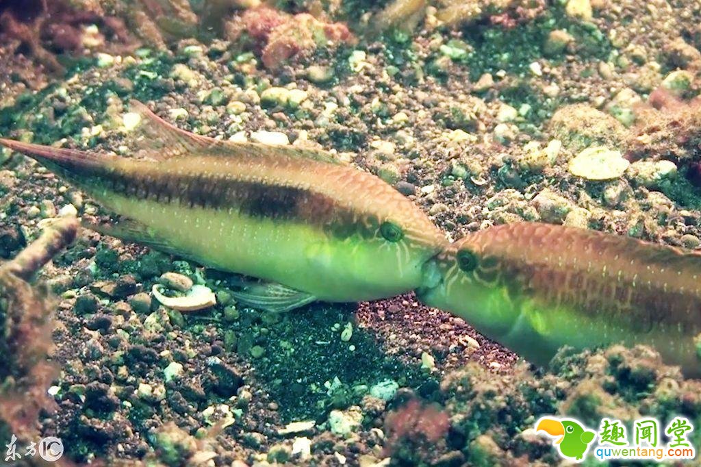 乍看这组图你是不是也被这两条当众玩亲亲的隆头鱼虐到了?