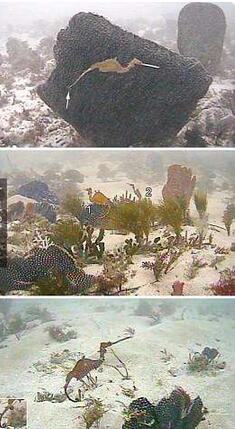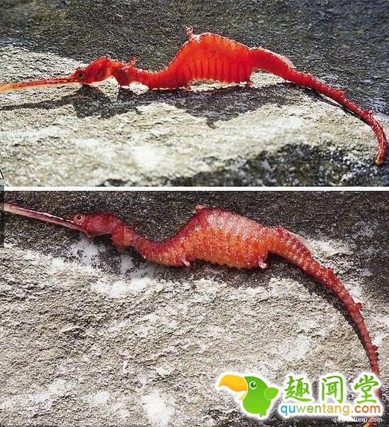 ▼这只神秘的海龙外型和下图一般海龙有些不同,它少了草海龙和叶海龙身上最具特色的叶状副肢。