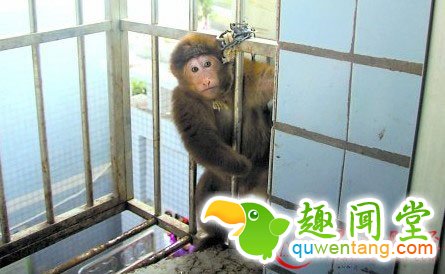 好在猴子身上还拴着一根绳索,民警用食物作诱饵,这才把猴子捉住,带回幕府山派出所,关进一个铁笼子里。这只猴子非常顽皮,也很聪明,它不安分地呆在笼子里,竟然趁民警不注意,自己打开了笼子的插销,开门跑了出来。随后,小猴子跑出了派出所,溜到了门外,跳上了一辆电动车。不过,猴子身上的绳子缠绕在电动车上,急得“猴哥”怪叫连连,上蹿下跳,没有人敢上前解开绳索。
