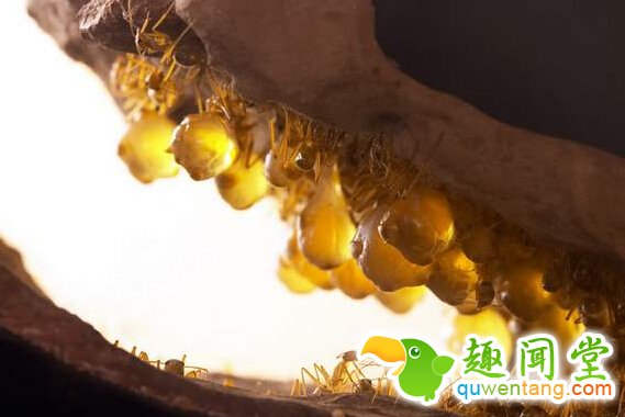 这是什么蚂蚁,身上还长了这个东西,为了解决心中的疑惑,男子找来当地的居民进行询问,最后得知,原来这是一种“蜜蚁”。它们腹部的小球就是它们自己贮备的粮食,这种蚂蚁一般都是采集花蜜为食,在土著名族中这可是难得的奢施美味。