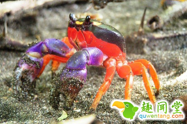 原产于哥斯达黎加,平时在陆地生活,但繁殖时必须回到海里去。虽然个头不大,只有5-15厘米,却能挖出1.5米长的洞穴!如果要分辨雌雄,只需看颜色,雌的较橙,雄的较红。