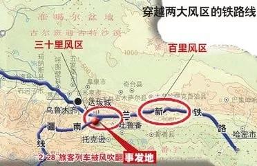 这个区间常年都在刮大风,12级的风说刮就刮。2006年4月9日 造成了T70次列车被困21个小时 晚点33小时到达北京,2007年2月28日1时55分,5807次列车运行至南疆铁路吐鲁番段珍珠泉至红山渠站间42公里+300米处,瞬间大风袭来,11节车厢发生侧翻。